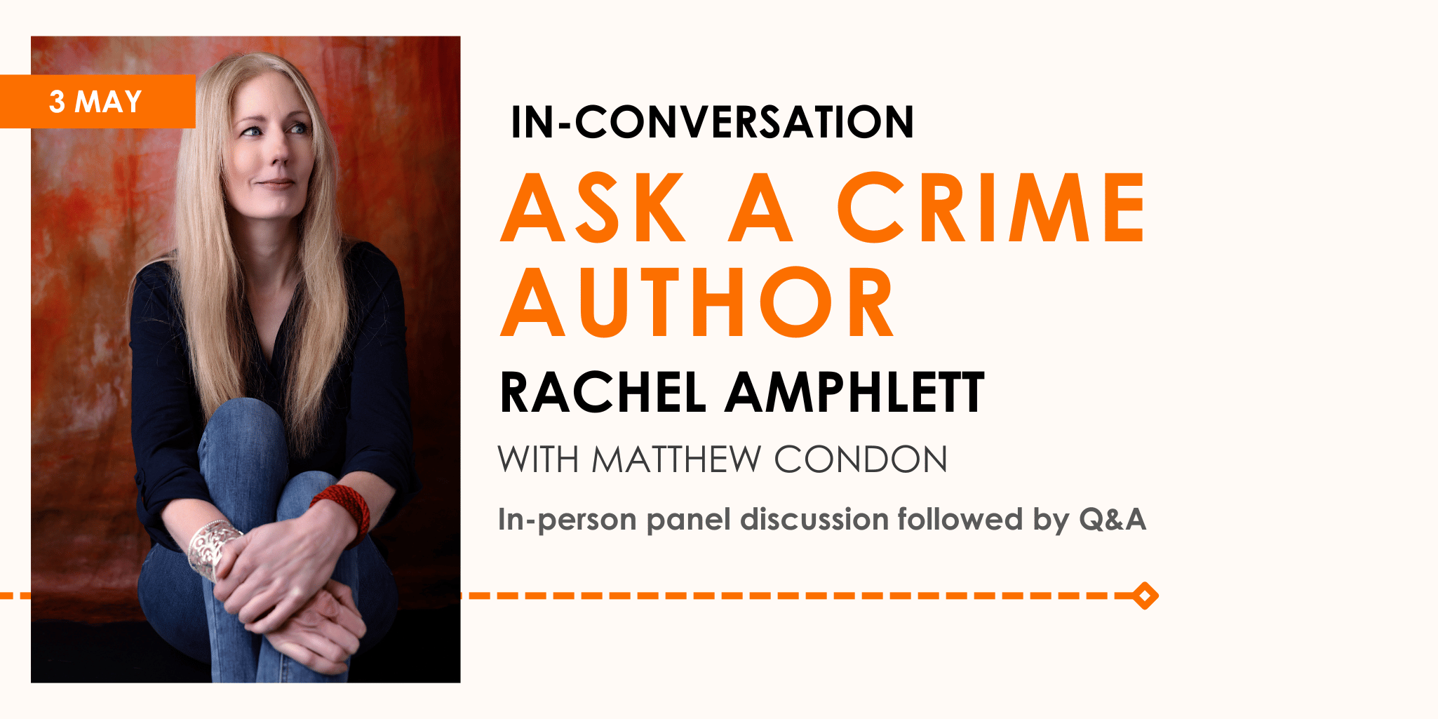 Join acclaimed author and journalist Matthew Condon for a 45-minute In Conversation with bestselling Australian Crime author Rachel Amphlett, followed by a 45-minute facilitated Q&A. Learn tips and tricks to take your crime writing to the next level.